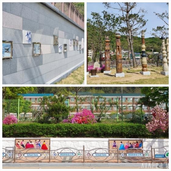 ¶ÇÇÑ ¸ðÀüÃʵîÇб³ÀÇ ³°°í ¿À·¡µÈ ´ãÀå º®È´Â Áö¿ª Áֹεé°ú ±³À°°øµ¿Ã¼µéÀÇ ÀǰßÀ» Àû±Ø ¹Ý¿µÇÏ¿© ÀϹÝÀûÀÎ º®ÈÀÇ Æ²À» ±ú°í À·³îÀÌ, Áٴٸ®±â, ¿¬³¯¸®±â µî ¹Î¼Ó³îÀÌ¿Í ÀØÇôÁ®°¡´Â ÀüÅë¹®È °è½ÂÀ» ÁÖÁ¦·Î ÇÑ ¾×ÀÚÇü º®È¸¦ ¼³Ä¡ÇØ ±æ°Å¸® °¶·¯¸®·Î Å»¹Ù²Þ½ÃÄÑ Àڶ󳪴 Çлýµé¿¡°Ô´Â ²Þ°ú Èñ¸ÁÀ» ½É¾îÁÖ°í, ½Ã¹Îµé¿¡°Ô´Â Äڷγª19·Î ÁöÄ£ ¸¶À½À» ´Þ·¡´Â Àå¼Ò·Î º¯È½ÃÄÑ ¸¹Àº È£ÀÀÀ» ¹Þ°í ÀÖ´Ù.