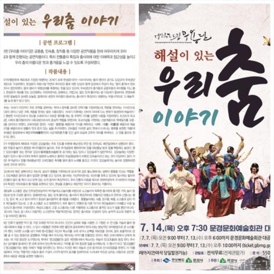 °æ»óºÏµµ µµ¸³¹«¿ë´ÜÀÇ ¡®Çؼ³ÀÌ ÀÖ´Â ¿ì¸®Ãã À̾߱⡯°¡ 7¿ù 14ÀÏ 19:30ºÐ¿¡ ¹®°æ¹®È¿¹¼úȸ°ü ´ë°ø¿¬Àå¿¡¼ ÁøÇàµÈ´Ù.