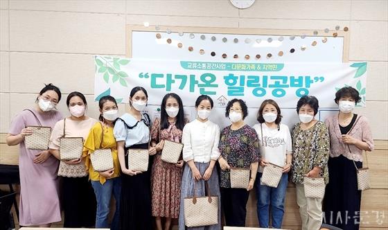 ÇÁ·Î±×·¥¿¡ Âü¿©ÇÑ °áÈ¥À̹ο©¼º°ú Áö¿ª¹ÎÀº ¡°Ã³À½¿¡´Â ¼¸ÔÇÏ¿´Áö¸¸ ȸ±â°¡ ÁøÇà µÉ¼ö·Ï ¡®¾ð´Ï¿Í µ¿»ý¡¯À̶ó°í ºÎ¸£¸ç ¼·Î¼·Î ³ó´ãÀ» ÁÖ°í ¹Þ´Â »çÀ̰¡ µÇ¾ú°í ½Ç·ÂÀÌ Á¶±Ý ºÎÁ·ÇÑ Âü¿©ÀÚ´Â ´Ù¸¥ »ç¶÷ÀÇ µµ¿òÀ» ¹Þ¾Æ °ø¿¹Ç°À» ¿Ï¼º ÇÒ ¼ö ÀÖ¾ú´Ù.¡±¸ç ¹è·Á¿¡ ´ëÇÑ °í¸¶¿òÀ» ÀüÇß´Ù.