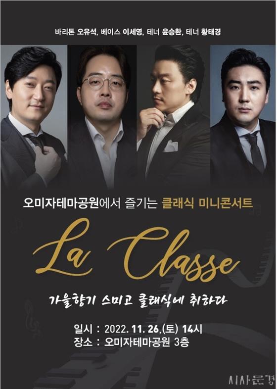 ¹®°æ»õÀç°ü¸®»ç¹«¼Ò(¼ÒÀå õµµÁø)¿¡¼­´Â 11¿ù 26ÀÏ ¿ÀÈÄ 2½ÃºÎÅÍ ¿À¹ÌÀÚÅ׸¶°ø¿ø 3Ãþ¿¡¼­ Ŭ·¡½Ä ¹Ì´ÏÄܼ­Æ®¸¦ °³ÃÖÇÑ´Ù. ÁÖÁ¦´Â ¡®°¡À»Çâ±â ½º¹Ì°í, Ŭ·¡½Ä¿¡ ÃëÇÏ´Ù¡¯ÀÌ´Ù.