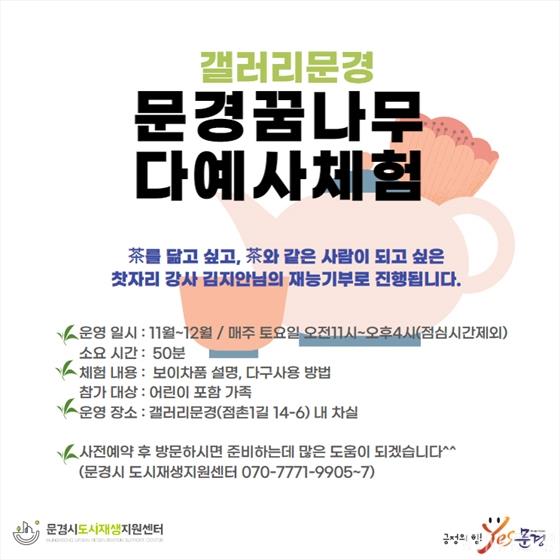 ¹®°æ½Ã¿Í ¹®°æ½Ã µµ½ÃÀç»ýÁö¿ø¼¾ÅÍ(¼¾ÅÍÀå ¹ÚÁ¤È£)´Â Âþ»ç¹ß°ø¹æ Àü½Ã°ü ¡°°¶·¯¸® ¹®°æ¡±(Á¡ÃÌ1±æ 14-6¹øÁö)¿¡ ¸¶·ÃµÈ ¾Æ´ãÇÑ Â÷½Ç¿¡¼­ ¾î¸°À̵éÀ» À§ÇÑ ´Ù¿¹»ç üÇèÀ» ÁøÇàÇÑ´Ù.