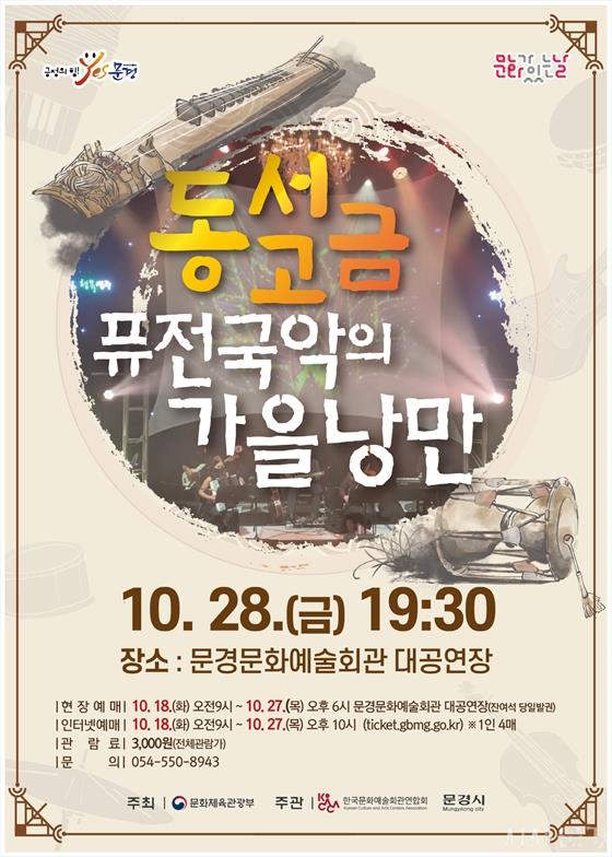 ¹®°æ¹®È­¿¹¼úȸ°üÀº ¿À´Â 10¿ù 28ÀÏ Àú³á 7½Ã 30ºÐ¿¡ ¹®°æ¹®È­¿¹¼úȸ°ü ´ë°ø¿¬Àå¿¡¼­ Ç»Àü±¹¾ÇÆÀ µ¿¼­°í±ÝÀÇ ¡®Ç»Àü±¹¾ÇÀÇ °¡À»³¶¸¸Äܼ­Æ®¡¯¸¦ ÁøÇàÇÑ´Ù.