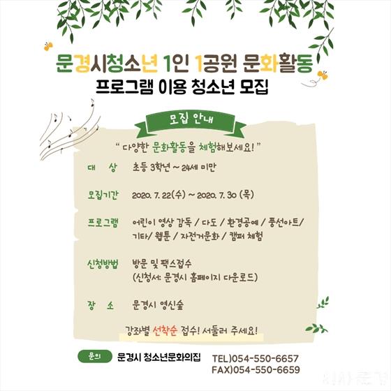 ¹®°æ½Ã û¼Ò³â¹®ÈÀÇÁý¿¡¼´Â 8¿ù 4ÀϺÎÅÍ 8¿ù 13ÀϱîÁö ÃÑ 6ȸ¿¡ °ÉÃÄ ¡®ÁöÄ£ û¼Ò³â, ´Ù½Ã û¼Ò³â¡¯À̶ó´Â ½½·Î°ÇÀ» °¡Áö°í ¡®¹®°æ½Ã û¼Ò³â 1ÀÎ 1°ø¿ø ¹®È Ȱµ¿¡¯ 10°³ ÇÁ·Î±×·¥À» ¿µ½Å½£¿¡¼ ¹«·á·Î ¿î¿µÇÑ´Ù.
