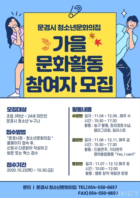 ¹®°æ½Ã û¼Ò³â¹®È­ÀÇÁý¿¡¼­´Â ¿À´Â 11¿ùºÎÅÍ ¹®°æ½Ã û¼Ò³â °¡À» ¹®È­È°µ¿ 8°³ ÇÁ·Î±×·¥ ¹× À¥Å÷ µ¶¼­½Ç, ²Þ±æ°ú ÇÔ²²ÇÏ´Â Áø·ÎüÇè µî ´Ù¾çÇÑ ÇÁ·Î±×·¥À» ¿î¿µÇÑ´Ù.