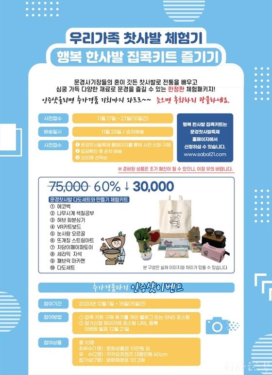 (Àç)¹®°æ¹®È°ü±¤Àç´Ü¿¡¼´Â ¸í¿¹¹®È°ü±¤ÃàÁ¦ ±â³ä ¹× óÀ½ °³ÃֵǴ ¿Â¶óÀÎ ¹®°æÂþ»ç¹ßÃàÁ¦ ¼º°ø °³ÃÖ¸¦ À§ÇØ ¿À´Â 11¿ù 17ÀϺÎÅÍ ¹®°æÂþ»ç¹ßÃàÁ¦ ȨÆäÀÌÁö(www.sabal21.com)¸¦ ÅëÇØ ÇÑÁ¤ÆÇ Çູ ÇÑ»ç¹ß ÁýÄÛŰƮ¸¦ ÆÇ¸ÅÇÑ´Ù.