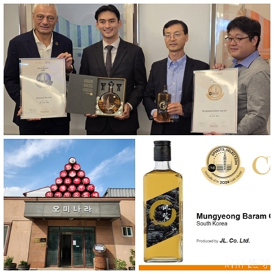 (¿À¹Ì³ª¶ó)¹®°æ¿¡ À§Ä¡ÇÑ ÀüÅëÁÖ ¾çÁ¶Àå ¿À¹Ì³ª¶ó(´ëÇ¥ ÀÌÁ¾±â)°¡ ÀÚ»çÀÇ »ç°úÁõ·ùÁÖ ¡®¹®°æ¹Ù¶÷ ¿ÀÅ© 40%¡¯·Î ¼¼°èÀû ¸í¼ºÀÇ ÁÖ·ùǰÆòȸ¿¡¼ ±Ý»óÀ» ¼ö»óÇÏ¿© ±¹...