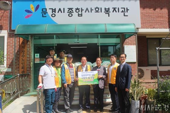 ¹®°æ½Ã Á¡ÃÌÁß¾Ó¶óÀ̿½ºÅ¬·´(ȸÀå Á¤Áö´ë)Àº Áö¿ªÀÇ ³ëÀεéÀ» À§ÇØ ½á ´Þ¶ó¸ç »ç¶ûÀÇ ½Ò(120Æ÷ 520¸¸¿ø »ó´ç)°ú ³ëÀÎÀ̵¿À» À§ÇÑ º¸ÇຸÁ¶Â÷¸¦ 5¿ù 25ÀÏ ¹®°æ½ÃÁ¾ÇÕ»çȸº¹Áö°ü(°üÀå »ó¿À½º´Ô) °æ·Î½Ä´ç, ³ª¼¶ÀÇ Áý µî ¹«·á±Þ½Ä¼Ò 2°³¼Ò¿¡ Àü´ÞÇß´Ù.