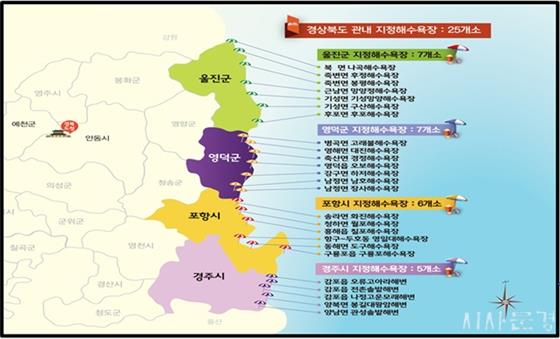 ÇÑÆí, °æºÏ µµ³» ÇØ¼ö¿åÀåÀº Æ÷Ç׽à 6°³ ÇØ¼ö¿åÀåÀÌ ¿À´Â 23ÀÏ °³ÀåÇϴµ¥ ÀÌ¾î °æÁÖ½Ã, ¿µ´ö±º, ¿ïÁø±º µî 3°³ ½Ã¡¤±º 19°³ ÇØ¼ö¿åÀåÀº ³»´Þ 13ÀÏ(´Ü, ¿ïÁø ±¸»êÇØ¼ö¿åÀåÀº 7¿ù 7ÀÏ °³Àå) °³Àå, 8¿ù 15ÀϺÎÅÍ 19ÀÏ Áß¿¡ ÆóÀåÇÑ´Ù.(ÀÚ¼¼ÇÑ »çÇ×Àº °¢ ½Ã¡¤±ºÃ» ȨÆäÀÌÁö¸¦ ÂüÁ¶)