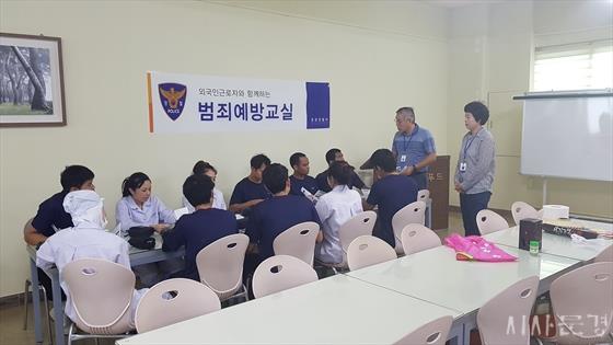 ¹®°æ°æÂû¼(°æÂû¼Àå ¹Ú¸í¼ö)´Â Áö³ 8¿ù 30ÀÏ, ¹®°æ½Ã »ê¾ç¸é ¼ÒÀç ¿Ü±¹ÀÎ °í¿ë¾÷ü¸¦ ¹æ¹®ÇÏ¿© ¿©¼º ÀÌÁֳ뵿ÀÚ 4¸íÀ» Æ÷ÇÔÇÑ ¿Ü±¹ÀÎ ±Ù·ÎÀÚ¸¦ ´ë»óÀ¸·Î ¹üÁË¿¹¹æ±³½ÇÀ» ¿î¿µÇß´Ù.