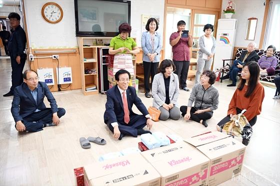 °íÀ±È¯ ¹®°æ½ÃÀåÀº Áö³ 9¿ù 21ÀÏ ³ó¾Ï¸é¿¡ ¼ÒÀçÇÑ Àå¾ÖÀνü³ ÁÖ¾Ö¶ûÀÇ Áý(½Ã¼³Àå ÀÌ»ó¹«)°ú ³ëÀοä¾ç½Ã¼³ ÃÊ·Ï¿ä¾ç¿ø(½Ã¼³Àå °ø°æ¹Ì)À» ¹æ¹®ÇÏ¿© ½Ã¼³¿¡¼ »ýȰÇÏ´Â »ýȰÀε鿡°Ô À§¹®Ç°(»ýÇÊǰ)À» Àü´ÞÇϰí Á¾»çÀÚµéÀ» °Ý·ÁÇß´Ù.