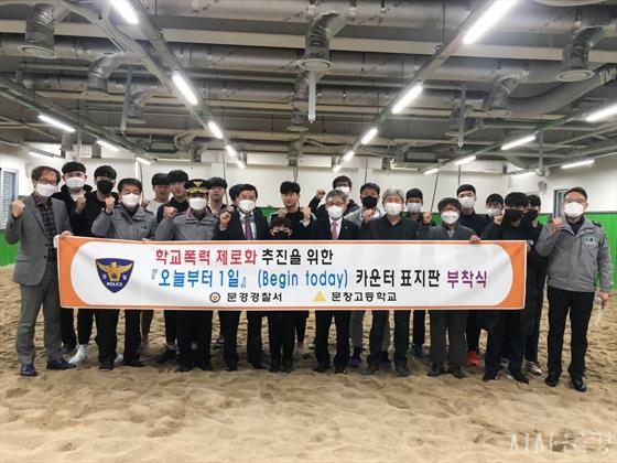 ¹®°æ°æÂû¼(¼Àå ¼µ¿¼ö)´Â Áö³ 3¿ù 12ÀÏ ¹®Ã¢°íµîÇб³ ¾¾¸§¿¬½ÀÀå³»¿¡¼ ¹®°æ°æÂû¼ »ýȰ¾ÈÀü°úÀå, Çб³Àå, ±³À°Ã» ±³À°Áö¿ø°úÀåµî 20¸íÀÌ Âü¼®ÇÑ °¡¿îµ¥ ¿îµ¿ºÎ Çб³Æø·Â Á¦·ÎÈ ÃßÁø¿¡ µû¸¥ ¡°¿À´ÃºÎÅÍ 1ÀÏ(Begin Today)¡± Ä«¿îÅÍ ´Ù¿î Ç¥Áö ºÎÂø½ÄÀ» °¡Á³´Ù.