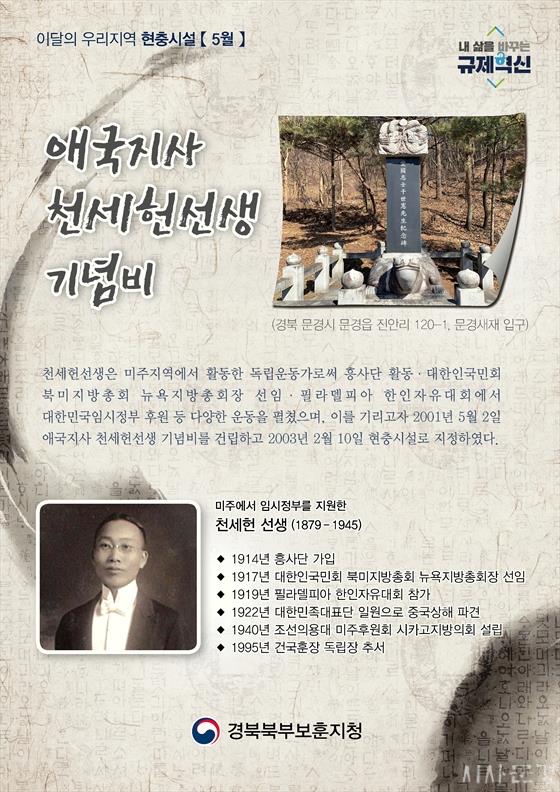 °æºÏºÏºÎº¸ÈÆÁöû(ÁöûÀå ¿ìÁø¼ö)Àº Èï»ç´Ü ⸳(5¿ù 13ÀÏ)À» °è±â·Î 2021³â 5¿ù ÀÌ´ÞÀÇ ¿ì¸®Áö¿ª ÇöÃæ½Ã¼³·Î ¾Ö±¹Áö»ç õ¼¼Çå¼±»ý ±â³äºñ(°æºÏ ¹®°æ½Ã ¹®°æÀ¾ Áø¾È¸® 120-1)¸¦ ¼±Á¤Çß´Ù°í ¹àÇû´Ù.