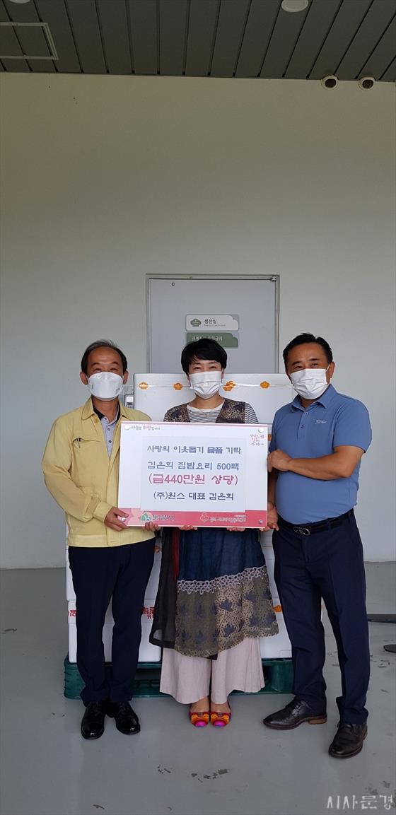 ¢ß¿ø½º(´ëÇ¥ ±èÀºÈñ)´Â Áö³ 8¿ù 6ÀÏ Äڷγª-19·Î ÀÎÇÑ Áö¿ª»çȸÀÇ ¾î·Á¿òÀ» ÇÔ²² ±Øº¹Çϱâ À§ÇÑ ÀÌ¿ô»ç¶ûÀÇ ½ÇõÀ¸·Î¡®±èÀºÈñÀÇ Áý¹ä¿ä¸®¡¯ 3Á¾ 500ÆÑ(¾à 440¸¸¿ø »ó´ç)À» ¹®°æ½Ã¿¡ ±âŹÇß´Ù.