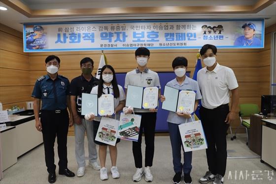 ¹®°æ°æÂû¼(¼Àå ¾Èµ¿Çö)´Â Áö³ 8¿ù 30ÀÏ ¹®°æ°æÂû¼ 2Ãþ ¹®ÈñȦ¿¡¼ °ü³» ÁßÇб³ Çб³Æø·Â ¿¹¹æ ¸ð¹üû¼Ò³â 9¸íÀ» ¼±Á¤ÇÏ¿© °æÂû¼Àå »óÀå ¹× ½ÎÀκ¼À» ¼ö¿©Çß´Ù.