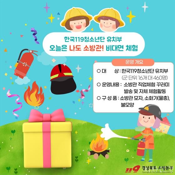 À¯Ä¡¿øÀ¸·Î ¼Ò¹æ°ü Á÷¾÷À» üÇèÇØ º¼ ¼ö ÀÖ´Â Á÷¾÷üÇè ²Ù·¯¹Ì(¼Ò¹æ°ü ¸ðÀÚ, ¹°ÃÑ ¼Òȱâ, ¸ðÇü ºÒ ¸ð¾ç)¸¦ Á¦°øÇÏ´Â ºñ´ë¸é ¿Â¶óÀÎ ¹æ½ÄÀ¸·Î ÁøÇàµÈ´Ù.