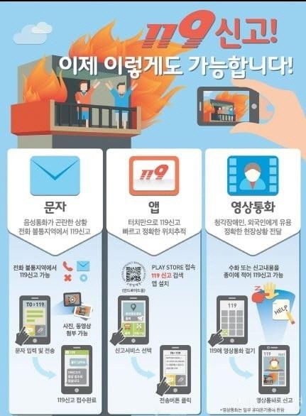 ù°, À¯¹«¼± Àüȸ¦ ÀÌ¿ëÇÑ 119 ½Å°í ¹æ¹ýÀÌ´Ù. ÈÞ´ëÀüÈ À½¼ºÀ» ÅëÇØ ´©±¸³ª ½±°í ºü¸£°Ô ½Å°íÇÒ ¼ö ÀÖ´Ù.
