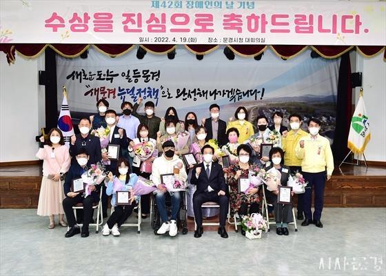 ¹®°æ½Ã(½ÃÀå °íÀ±È¯)´Â Á¦42ȸ Àå¾ÖÀÎÀÇ ³¯À» ¸Â¾Æ Áö³ 4¿ù 19ÀÏ ½Ãû ´ëȸÀǽǿ¡¼ ¸ð¹üÀå¾ÖÀΰú Àå¾ÖÀκ¹Áö À¯°øÀÚ¿¡ ´ëÇÑ Ç¥Ã¢ ¼ö¿©½ÄÀ» °³ÃÖÇß´Ù.