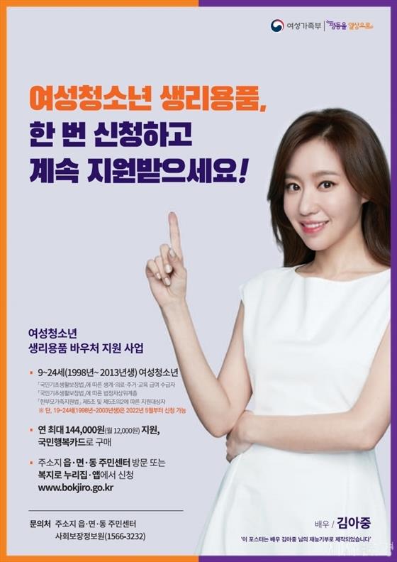 ¹®°æ½Ã´Â ¿©¼ºÃ»¼Ò³âÀÇ º¸°ÇÀ§»ý¿ëǰ Áö¿ø´ë»óÀÌ ¸¸19¼¼~24¼¼(1998~2003³â»ý)·Î È®´ëµÊ¿¡ µû¶ó Áö¿ø´ë»ó ¿©¼ºÃ»¼Ò³âÀÌ º¸°ÇÀ§»ý¹°Ç°À» Áö¿ø¹ÞÀ» ¼ö ÀÖµµ·Ï º¸°ÇÀ§»ý¹°Ç° ¹Ù¿ìó(ÀÌ¿ë±Ç)¸¦ 5¿ùºÎÅÍ 12¿ù±îÁö ½Åû ¹Þ°í ÀÖ´Ù.