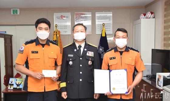 ±¸Á¶Á¤Ã¥ ¹ßÇ¥´ëȸ »óÀå ¼ö¿©½Ä ÀÌÈÄ ¿ïÁø »êºÒ Áø¾Ð¿¡ Èû½á ±¹¹ÎÀÇ »ý¸í°ú Àç»ê º¸È£¿¡ À̹ÙÁöÇÑ °ø·Î°¡ Å« ±èÁöÈÆ ¼Ò¹æ»ç¿¡°Ô ǥâÀåÀ» ¼ö¿©ÇÏ¸ç ¼ö¿©½ÄÀº ¸¶¹«¸®µÆ´Ù.
