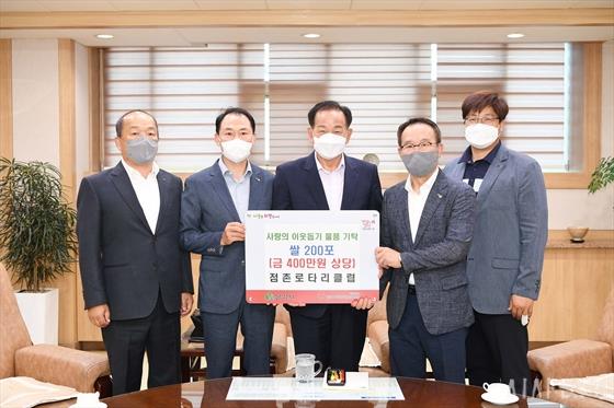 ¹®°æ½Ã Á¡Ã̷Ο¸®Å¬·´(ȸÀå ÀåÀçºÀ)Àº Áö³ 7¾ó 19ÀÏ ½ÅÀÓȸÀå ÃëÀÓÀ» ¸ÂÀÌÇÏ¿© ¾î·Á¿î ÀÌ¿ôÀ» À§ÇØ ½Ò 200Æ÷(±Ý400¸¸¿ø »ó´ç)¸¦ ¹®°æ½Ã¿¡ ±âŹÇß´Ù.