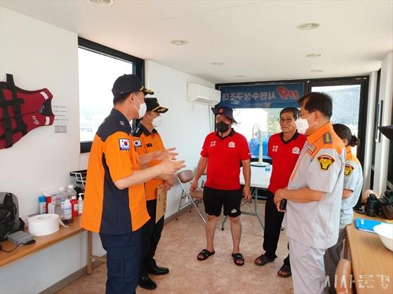 ÀÌ¿µÆÈ °æºÏµµ ¼Ò¹æº»ºÎÀåÀº Áö³ 8¿ù 6ÀÏ Æ÷Ç× ¿ùÆ÷ ÇØ¼ö¿åÀå°ú ¿µ´ö °í·¡ºÒ ÇØ¼ö¿åÀåÀ» ¹æ¹®ÇØ ¹°³îÀÌ ¾ÈÀü½Ã¼³À» Á¡°ËÇÏ°í ¹°³îÀÌ ¾ÈÀü¿ä¿øÀ¸·Î ¹èÄ¡µÈ 119½Ã¹Î¼ö»ó±¸Á¶´ë ±Ù¹«ÀÚ¸¦ °Ý·ÁÇß´Ù.