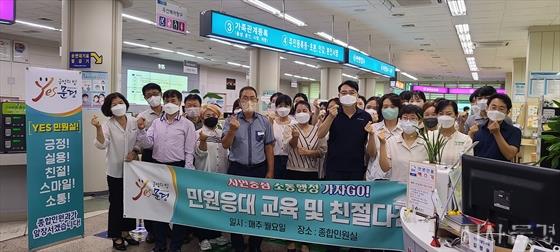 ¡®±àÁ¤ÀÇÈû! YES¹®°æ!¡¯ ¹Î¼±8±â ½½·Î°Ç¿¡ ¹ß¸ÂÃß¾î ¼ÒÅëÀ» ÅëÇÑ ¹Î¿ø¼ºñ½º °³¼±°ú °í°´¸¸Á· ¹Î¿ø¼ºñ½º Á¦°øÀ» À§ÇØ, ±Ù¹«½ÃÀÛ Àü ¹Î¿øÀÀ´ë ¿¹Àý, ±âº» ÀÚ¼¼, Àλç¿ä·É µîÀ» ½Ç½ÀÇϰí Ä£Àý ±¸È£¸¦ Á¦Ã¢ÇÏ¸ç ½Ã¹ÎµéÀÌ ºÒÆíÇÔÀÌ ¾øµµ·Ï ÃÖ¼±ÀÇ ³ë·ÂÀ» ´ÙÇϰڴٴ °¢¿À¸¦ ´ÙÁ³´Ù.