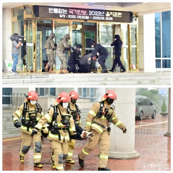 ¹®°æ½Ã(½ÃÀå ½ÅÇö±¹)´Â 8¿ù 23ÀÏ ¿ÀÈÄ 4½ÃºÎÅÍ ¹®°æ½Ãû ÀüÁ¤¿¡¼ ¹®°æ½Ãû Å×·¯´ëÀÀ ¹æÈ£ÈÆ·ÃÀ» ÁÖÁ¦·Î 2022 À»Áö¿¬½À ½ÇÁ¦ÈÆ·ÃÀ» ½Ç½ÃÇß´Ù. À̹ø ½ÇÁ¦ÈÆ·ÃÀº Å×·¯·Î ÀÎÇÑ ºØ±«, ÈÀç µî ºÒ½Ã¿¡ ´ÚÄ¥ ¼ö ÀÖ´Â Àü¡¤Æò½Ã Àç³»óȲ¿¡ µû¸¥ ÀÎÀû¡¤¹°Àû ÇÇÇØ¸¦ ÃÖ¼ÒÈÇÏ°í ¹Î¡¤°ü¡¤±º¡¤°æ ½Å¼ÓÇÑ Ãʵ¿Á¶Ä¡¸¦ ÅëÇØ »çżö½À ´É·ÂÀ» ¹è¾çÇϱâ À§ÇØ ¸¶·ÃµÆ´Ù.