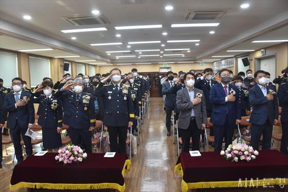 ±èÁø¿í ¼Ò¹æ¼ÀåÀº ǥâÀ» ¼ö»óÇÑ À̵鿡°Ô °¨»ç¿Í ÃàÇÏ Àλ縦 ÀüÇÏ¸é¼ ¡°Á¦60Áֳ⠼ҹæÀÇ ³¯À» ¸Â¾Æ ±¹¹ÎÀÇ ¾ÈÀü°ú ÇູÀ» ÁöŰ´Â µçµçÇÑ ¾ÈÀüÁöÅ´À̷μ, ±×°£ÀÇ ¶¡¹æ¿ï·Î ¿À´ÃÀ» Àϱ¸¾î ¿À½Å ÀÇ¿ë¼Ò¹æ´ë¿ø°ú ¼Ò¹æ°ø¹«¿ø, ¼Ò¹æ°¡Á· ¿©·¯ºÐ²² °¢º°ÇÑ °¨»çÀÇ ¸»¾¸À» µå¸°´Ù¡±°í ¸»Çß´Ù.