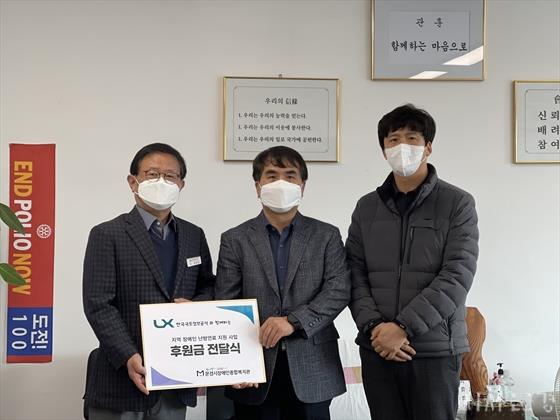 LXÇѱ¹±¹ÅäÁ¤º¸°ø»ç ¹®°æÁö»ç(Áö»çÀå ÀÓ¿øÈ£)´Â Áö³ 11¿ù 10ÀÏ Áö¿ª Àå¾ÖÀÎ °¡Á¤¿¡ ³¹æ¿¬·á Áö¿øÀ» À§ÇØ ¹®°æ½ÃÀå¾ÖÀÎÁ¾ÇÕº¹Áö°ü(°üÀå ¹ÚÁ¾ÈÆ)¿¡ ÈÄ¿ø±ÝÀ» Àü´ÞÇß´Ù.