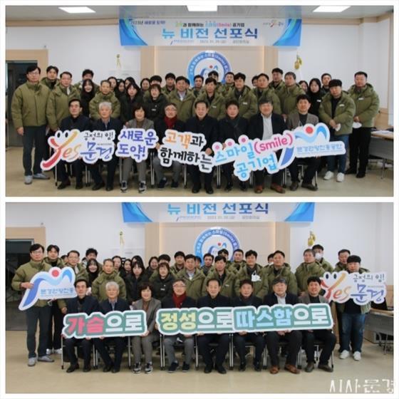 ¹®°æ°ü±¤ÁøÈï°ø´Ü(ÀÌ»çÀå ±è¿ÁÈñ)´Â Áö³ 1¿ù 20ÀÏ ½ÅÇö±¹ ½ÃÀå, °ø´Ü ÀÌ»ç¿Í Àü Á÷¿øÀÌ Âü¿©ÇÑ °¡¿îµ¥ ¡®New ºñÀü ¼±Æ÷½Ä¡¯À» °³ÃÖÇÏ¿´À¸¸ç, Ä£Àýµµ½Ã ¹®°æ ½ÇÇöÀ» À§ÇØ ¡®Ä£Àý¼ºñ½º ½Çõ´ÙÁü¡¯À» Çß´Ù.