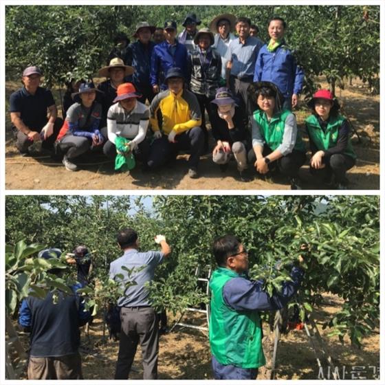 ÀÌ ³¯ »êºÏ¸éÇàÁ¤º¹Áö¼¾ÅÍ¿Í ¹®°æ°ü±¤ÁøÈï°ø´Ü Á÷¿ø 20¿©¸íÀÌ ÇÔ²² »êºÏ¸é ³»È¸®¿¡ À§Ä¡ÇÑ °ú¼ö¿øÀ» ã¾Æ 30µµ°¡ ³Ñ¾î¼´Â ¹«´õÀ§ ¼Ó¿¡¼µµ »ç°úÀû°ú(¿¸Å¼Ô±â) ÀÛ¾÷¿¡ ±¸½½¶¡À» Èê·È´Ù.