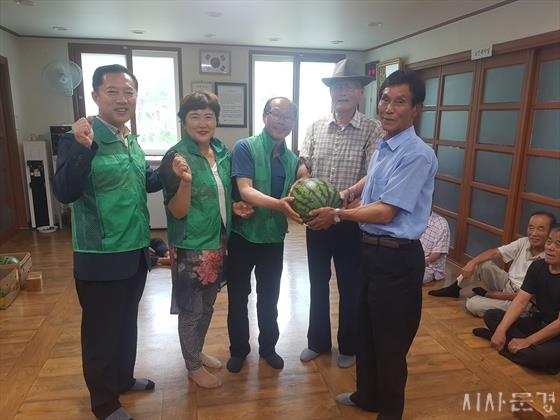 ¹Ú»óÈ£ ÇùÀÇȸÀåÀº ¡°¾î¸£½ÅµéÀÇ ¹«´õ¿î ¿©¸§³ª±â¿¡ Á¶±×¸¸ µµ¿òÀÌ µÇ°íÀÚ ¼ö¹Ú ³ª´® Çà»ç¸¦ ÁغñÇÏ°Ô µÇ¾úÀ¸¸ç, ¾î¸£½ÅµéÀÌ Ç×»ó °Ç°­ÇϽñ⸦ ±â¿øÇÑ´Ù.¡± ¶ó°í ¸»Çß´Ù.