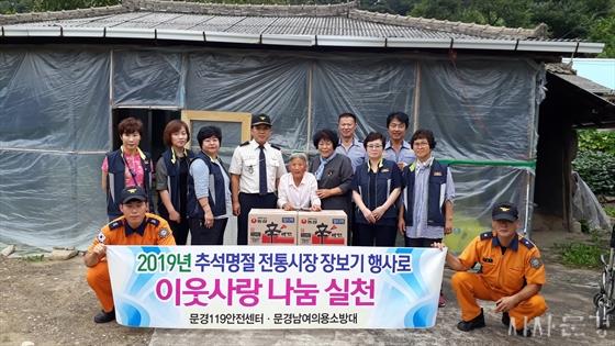 ¹®°æÀ¾ ³²¿©ÀÇ¿ë¼Ò¹æ´ë(´ëÀå ±èÅ¿ë, ¹®¼ºÀÌ) 30¿©¸í°ú ¹®°æ119¾ÈÀü¼¾ÅÍ(¼¾ÅÍÀå ÀüÀçÈ«) Á÷¿øµéÀº Áö³ 9¿ù 2ÀÏ ÇѰ¡À§ Ãß¼®¸íÀýÀ» ¸ÂÀÌÇÏ¿© ¡°ÀüÅë½ÃÀå À庸±â Çà»ç¡±¸¦ ½Ç½ÃÇÏ°í ±× ¹°Ç°À» °ü³» ¾î·Á¿î µ¶°Å³ëÀÎ 4°¡±¸¿¡ Àü´ÞÇß´Ù.