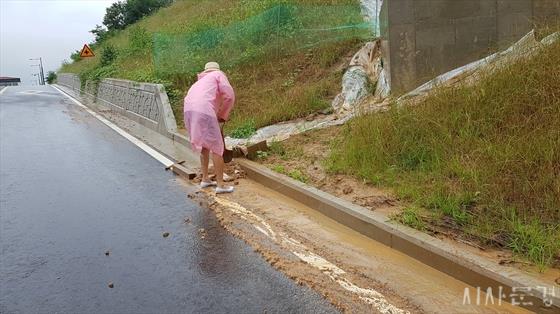 ±è¿µÃ¶ Á¡ÃÌ3µ¿ 2ÅëÀåÀº ÁýÁßÈ£¿ì·Î ¹çµÏ¿¡¼ Åä»ç°¡ µµ·Î·Î Èê·¯³ÑÄ¡´Â »óȲÀ» ¹ß°ßÇϰí Áï½Ã »ð µîÀ¸·Î ¹°±æÀ» µ¹·Á Åä»ç°¡ ´õ ÀÌ»ó À¯ÃâµÇÁö ¾Êµµ·Ï Á¶Ä¡ÇÏ´Â ÇÑÆí ÁÖº¯ÀÇ ¿ì¼ö°üÀ» ¿°í ¹Ù´ÚÀ» Á¤ºñÇß´Ù.