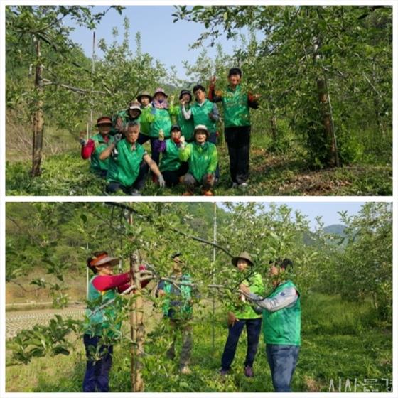 À̹ø ÀÏ¼Õ µ½±â¿¡ Âü¿©ÇÑ 20¿©¸íÀÇ »õ¸¶À»È¸¿øÀº ¹Ù»Û ³ó»çöÀÓ¿¡µµ °¢ÀÚ ½Ã°£À» ³»¾î ÀÏ¼Õ ºÎÁ· ³ó°¡¿¡ Á¶±ÝÀ̳ª¸¶ µµ¿òÀÌ µÇ±â¸¦ ¹Ù¶ó´Â ¶æ¿¡¼ »ç°ú ²É µû±â ÀÛ¾÷À» À̸¥ ¾ÆÄ§ºÎÅÍ ½Ç½ÃÇß´Ù.