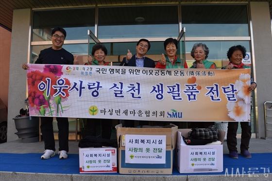 »õ¸¶À»ÁöµµÀÚ¸¶¼º¸éÇùÀÇȸ(ȸÀå ±è¿µ¼ö)¿Í ¸¶¼º¸é»õ¸¶À»ºÎ³àȸ(ȸÀå ±èº¹¼ø)´Â Áö³­ 10¿ù 16ÀÏ ÁöÀû-ÀÚÆó¼ºÀå¾ÖÀÎ °ÅÁֽü³ »ç¶û¸¶À»¿¡ ÀÌ¿ô»ç¶û µ¹º¸¹Ì¿îµ¿ÀÇ ÀÏȯÀ¸·Î »ç¶ûÀÇ ¿ÊÀ» Àü´ÞÇß´Ù.