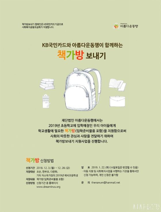¡®Ã¥°¡¹æ º¸³»±â¡¯ Áö¿ø »ç¾÷Àº ±¹³» °æÁ¦Àû ¾î·Á¿òÀ» °Þ°í ÀÖ´Â Àú¼Òµæ °¡Á¤(±âÃÊ»ýȰ¼ö±Þ±ÇÀÚ, Â÷»óÀ§°èÃþ, Á¶¼Õ, ÇѺθð, ´Ù¹®È­ °¡Á¤ µî)ÀÇ ¿¹ºñ ÃʵîÇлý 1,500¸í ¿¡°Ô Ã¥°¡¹æ°ú ÀÔÇÐ Áغñ ¹°Ç°À» ¹«·á·Î ¼±¹°ÇØÁÖ´Â »ç¾÷À¸·Î, ¿ÃÇØ·Î 8³â°¸¦ ¸ÂÀÌÇß´Ù.