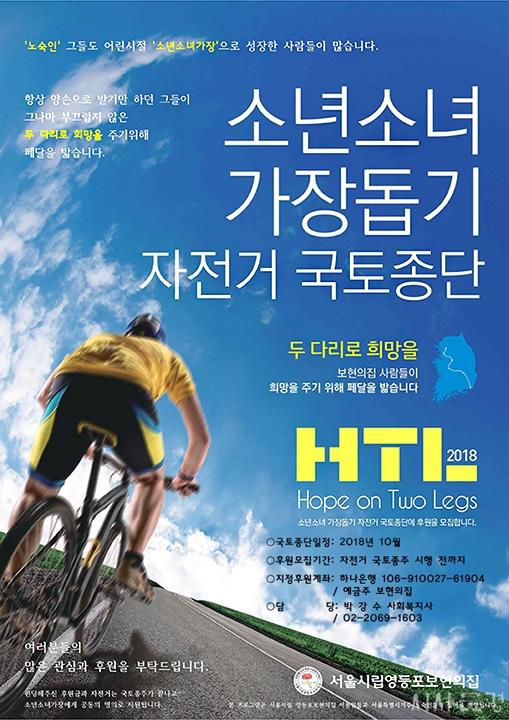 ´ëÇѺұ³Á¶°èÁ¾»çȸº¹ÁöÀç´Ü(´ëÇ¥ÀÌ»ç ¿øÇེ´Ô)ÀÌ À§Å¹ ¿î¿µÇÏ´Â ³ë¼÷ÀÎ »çȸº¹Áö½Ã¼³ÀÎ ¼¿ï½Ã¸³¿µµîÆ÷º¸ÇöÀÇÁý(¿øÀå ÀÓµµ¿µ)ÀÌ 10¿ù 24ÀÏ ¼Ò³â¼Ò³à°¡Àåµ½±â ÀÚÀü°Å ±¹ÅäÁ¾´Ü ¡®µÎ ´Ù¸®·Î Èñ¸ÁÀ»(Hope On Two Legs)¡®À» ½ÃÀÛÇÑ´Ù°í ¹àÇû´Ù.