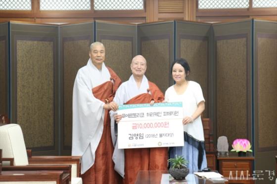 Áö³ 5¿ù 22ÀÏ ºÀÇàµÈ ºÒ±â2562³â ºÎó´Ô¿À½Å³¯ ºÀÃà ¹ý¿ä½Ä¿¡¼ ºÒÀÚ´ë»óÀ» ¼ö»óÇÑ ±¹¾ÇÀÎ ±è¿µÀÓ¾¾´Â ÀÌ ³¯ Àü´Þ½Ä¿¡¼ "ºÒ±³°è¿¡ °¨»çÇÑ Á¡ÀÌ ¸¹¾Æ¼ ¸¶À½ ÇÑÄÒ¿¡ ÀºÇý¸¦ °±¾Æ¾ß°Ú´Ù°í »ý°¢Çß¾ú´Âµ¥, ÁÁÀº ±âȸ°¡ µÇ¾î ÀÌ·¸°Ô ±â±ÝÀ» Àü´Þ ÇÒ ¼ö ÀÖ°Ô µÇ¾î ±â»Ú´Ù"°í ¸»Çß´Ù.