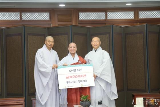 Åëµµ»ç ÁÖÁö ¿µ¹è½º´ÔÀÌ ¹æÀ彺´ÔÀ¸·Î Ãß´ëµÈ ¼ºÆÄ½º´ÔÀ» ´ë½ÅÇÏ¿©, ÃÖ±Ù Àç´Ü¹ýÀÎ ¾Æ¸§´Ù¿îµ¿Çà(ÀÌ»çÀå ¼³Á¤½º´Ô)À» ¿¹¹æÇϰí, ¼Ò¾Æ¾Ï Áö¿øÀ¸·Î 5,000¸¸ ¿øÀ» Àü´ÞÇß´Ù.