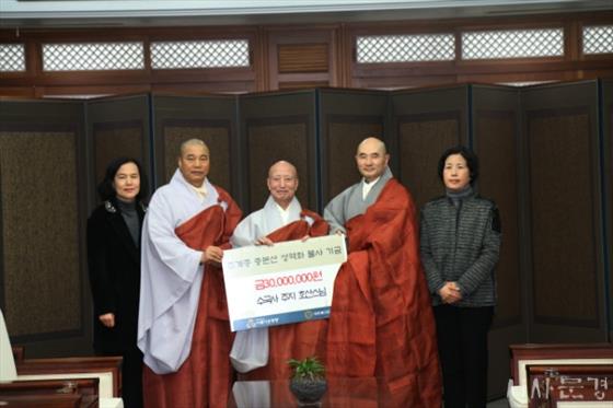 ¼¿ï »ï°¢»ê¿¡ ÀÚ¸®ÇÑ ¼ö±¹»ç ÁÖÁö È£»ê½º´ÔÀÌ Áö³ 2¿ù 23ÀÏ ÃѺ»»ê ¼º¿ªÈºÒ»ç ±â±Ý 3,000¸¸ ¿øÀ» Àç´Ü¹ýÀÎ ¾Æ¸§´Ù¿îµ¿Çà(ÀÌ»çÀå ¼³Á¤½º´Ô)¿¡ Àü´ÞÇß´Ù.