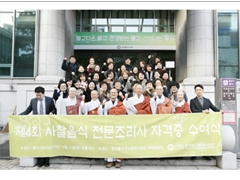 2017³âµµ Á¦4ȸ »çÂûÀ½½Ä Àü¹®Á¶¸®»ç ÀÚ°ÝÁõ ¼ö¿©½ÄÀÌ Áö³ 12¿ù 21ÀÏ Çѱ¹ºÒ±³¿ª»ç¹®È±â³ä°ü ±¹Á¦È¸ÀÇÀå¿¡¼ ÀÖ¾ú´Ù. »çÂûÀ½½Ä Àü¹®Á¶¸®»ç ÀڰݽÃÇèÀº 201...