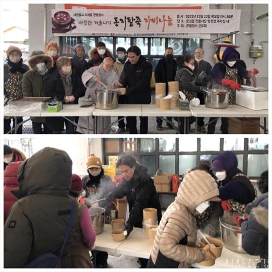 À̳¯ ½º´Ô°ú ½ÅµµµéÀÌ Âü¿©ÇÏ¿© »õº®ºÎÅÍ Á¤¼º½º·¹ ÁغñÇÑ 500ÀκÐÀÇ ÆÏÁ×°ú ½Ã·ç¶±À» Áֹε鿡°Ô ¹«·á·Î ³ª´©¾î ÁÖ¾ú´Ù.