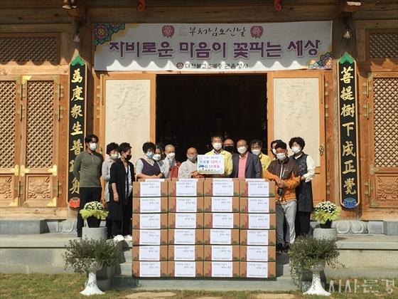 ´ëÇѺұ³Á¶°èÁ¾ °üÀ½Á¤»ç(ÁÖÁö ¿ø±¤½º´Ô, ¹®°æ½Ã ¹®°æÀ¾ °üÀ½¸®)´Â Áö³­ 9¿ù 25ÀÏ Á¶¼Õ°¡Á¤ ¹× Ȧ·Î Áö³»´Â ¾î¸£½Åµé¿¡°Ô ÀüÇØ´Þ¶ó¸ç Á¤¼ºÀ¸·Î ¸¶·ÃÇÑ ½Ä·áǰ ¼¼Æ® 50¹Ú½º¿Í ÈÞÁö 50¹­À½À» ¹®°æÀ¾ÇàÁ¤º¹Áö¼¾ÅÍ¿¡ ±âŹÇß´Ù.