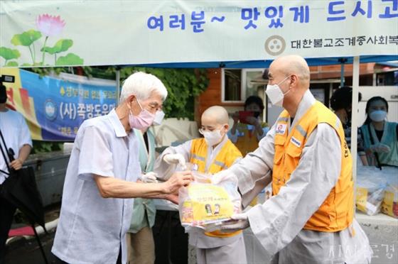 »óÀÓÀÌ»ç º¸Àνº´Ô°ú »ç¹«±¹Àå ´ÉÇнº´ÔÀº Á¶°èÁ¾ÀÚ¿øºÀ»ç´Ü°ú ÇÔ²² ¹«´õÀ§¿Í Æø¿ì, Äڷγª19·Î ´õ¿í ¾î·Á¿î »óȲÀ» °Þ°í ÀÖ´Â 1500¿©¸íÀÇ ÂʹæÃÌ ÁֹεéÀ» À§ÇØ ÄŶó¸é°ú »îÀº °è¶õ, »ý¼ö, ¶±, °úÀÚ·Î ±¸¼ºµÈ ´ëü½ÄÀ» Àü´ÞÇß´Ù. ´ëÇѺұ³Á¶°èÁ¾»ç¾÷ÁöÁÖȸ»ç µµ¹ÝHC´Â ÀÚºñ³ª´® ½ÇõÇà»çÀÇ ÃëÁö¿¡ °ø°¨ÇÏ¸ç °¨·Î¼ö 2000º´À» ÈÄ¿øÇß´Ù.