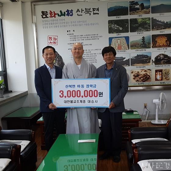 ¹®°æ½Ã »êºÏ¸é ¼ÒÀç ´ë½Â»ç(ÁÖÁö ÀϿ콺´Ô)´Â Áö³ 5¿ù 29ÀÏ »êºÏ¸é Àú¼Òµæ Áö¿ª ¾Æµ¿µé¿¡°Ô ½á´Þ¶ó¸ç ÀåÇбâ±Ý 300¸¸¿øÀ» »êºÏ¸é(¸éÀå ±èÈñÇö)¿¡ ±âŹÇß´Ù.