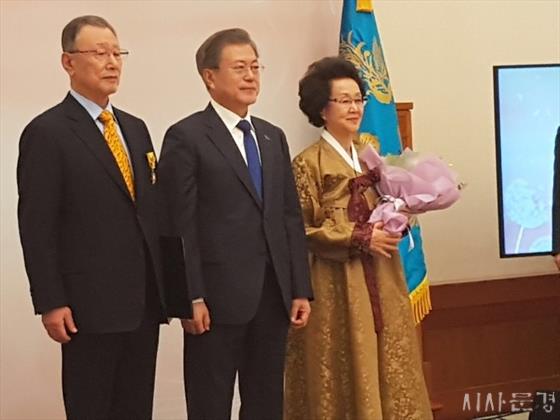 ¹ÚÀοø îñ ¹®°æ½ÃÀå(84¼¼, ¼ÒÃÌ¾Ö°æ¿ø ÀÌ»çÀå, ¹Ú¿­ ±â³ä»ç¾÷ȸ ÀÌ»çÀå)ÀÌ 26ÀÏ ¿ÀÈÄ Ã»¿Í´ë¿¡¼­ ÁøÇàµÈ ¡®Á¦8±â ±¹¹ÎÃßõÆ÷»ó¼ö¿©½Ä¡¯¿¡¼­ Áö¿ªÀÎÀç¾ç¼º°ú Áö¿ª»çȸºÀ»çȰµ¿ µî ¹®°æÁö¿ª¹ßÀü¿¡ Å©°Ô ±â¿©ÇÑ °ø·Î¸¦ ÀÎÁ¤¹Þ¾Æ ¹®ÀçÀÎ ´ëÅë·ÉÀ¸·ÎºÎÅÍ Á÷Á¢ ±¹¹ÎÈÆÀå ¸ñ·ÃÀåÀ» ¼­ÈÆ ¹Þ´Â ¿µ±¤À» ¾È¾Ò´Ù.