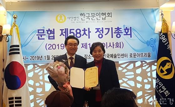 ±¹³» ÃÖ´ë ¹®ÇÐ ´ÜüÀÎ (»ç)Çѱ¹¹®ÀÎÇùȸ ºÎÀÌ»çÀå¿¡ ¹®°æ Ãâ½Å ±Ç°©ÇÏ ½ÃÀÎÀÌ ´ç¼±µÆ´Ù. Çѱ¹¹®ÀÎÇùȸ´Â Áö³ 1¿ù 26ÀÏ ¼¿ï ¾çõ±¸ ¼ÒÀç ´ëÇѹα¹¿¹¼úÀμ¾ÅÍ¿¡¼ Á¦58Â÷ Á¤±âÃÑȸ¸¦ ¿°í Á¦27´ë ÀÓ¿ø¼±°Å °³Ç¥°á°ú¸¦ ¹ßÇ¥Çß´Ù.