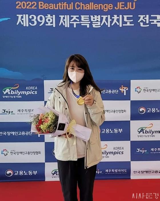 Á¦39ȸ Àü±¹Àå¾ÖÀαâ´É°æ±â´ëȸ¿¡¼ °æºÏ ´ëÇ¥·Î ÃâÀüÇÑ ¹®°æ½Ã ±èÁ¤¹Ì¾¾´Â ½Ã°¢µðÀÚÀκι®¿¡¼ ±Ý»ó(Àü±¹1À§) ¼ö»óÀÇ ¿µ¿¹¸¦ ¾È¾Ò´Ù.