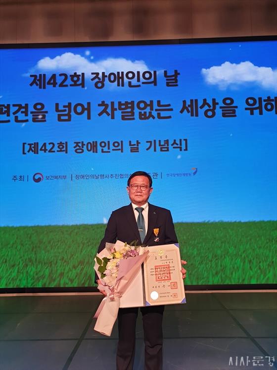¹ÚÁ¾ÈÆ ¹®°æ½ÃÀå¾ÖÀÎÁ¾ÇÕº¹Áö°üÀåÀº Áö³ 4¿ù 20ÀÏ ÄÜ·¡µå ¼¿ïÈ£ÅÚ ±×·£µåº¼·ý¿¡¼ ¿¸° Á¦42ȸ Àå¾ÖÀÎÀÇ ³¯ ±â³ä½Ä¿¡¼ Àå¾ÖÀκ¹ÁöÁõÁø ¹× ±ÇÀÍ Çâ»ó¿¡ ±â¿©ÇÑ °ø·Î·Î ±¹¹ÎÆ÷ÀåÀ» ¼ö»óÇß´Ù.